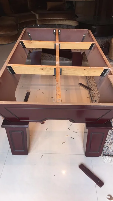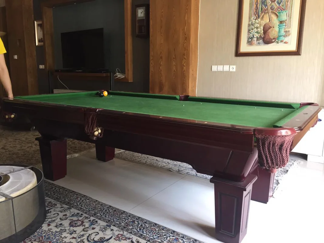 (میز بیلیارد وارداتی سایز ۸ فوت طرح لئو)💥ساخته شده چوب اَش آمریکایی💫 *سنگ اسلیت ۳ تکه*پارچه ترک نو آکبند(سبز یا آبی به انتخاب خریدار)،همراه با ۲ عدد چوب بازی ، گچ ،سرچوب ، مثلث ، سینی شار،پاکت ها چرم ۱۰۰٪ طبیعی و درجه ۱ مدل کالیفرنیا، (۱ عدد موجود)