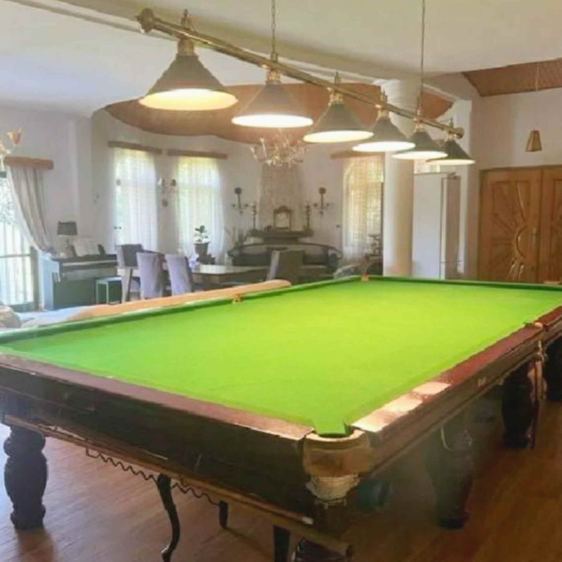 برند ویراکا مدل رایس ، ۱۲ فوت رنگ ماهگونی *استیل بلک*سنگ اسلیت پین دار کاملا سالم ماهوت سم اسپانیایی نو اکبند ، شار تایوانی ، چوب بازی ، چرتکه رست کوتاه و بلند ، گچ و سرچوب نو ،لوستر ۶ شعله کار کرده . (۱عدد موجود)